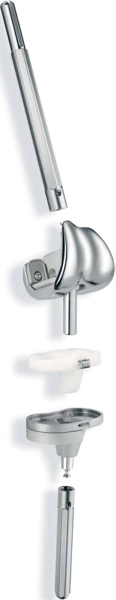 - Femoral Bileşen: CoCrMo alaşımından yapılmış olup, anatomik bir patellar oluğa sahiptir. Daha iyi patella takibi ve eklem stabilitesi sağlar.